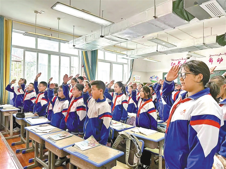 昌都市實驗小學六年級五班學生加永洛丁在教室里向記者分享了自己的感受:“看到電視里的畫面,我特別驕傲。聽爺爺講,舊西藏生活很苦,現(xiàn)在我們有這么好的學校,生活也越來越好,我要努力學習,讓西藏變得更美麗!”