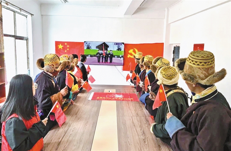 人民銀行日喀則市分行駐昂仁縣日吾其鄉(xiāng)日蘇村、西嘎村、普夏村、措嘎村、央曲村工作隊,組織村“兩委”班子、黨員干部、群眾集中收看了慶祝西藏自治區(qū)成立60周年大會實況直播,共同見證了這一重要歷史時刻。觀看過程中,大家心情激動,普夏村老人扎西表示:“以前怎么都不敢想,坐在家里就能看到拉薩的場景,在中國共產(chǎn)黨的領導下,我現(xiàn)在過上了以前想也不敢想的幸福生活,相信以后的生活會越來越好!”