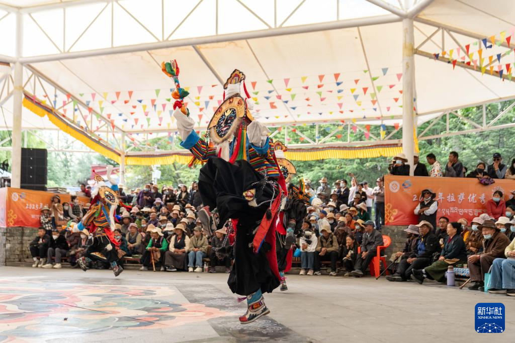 這是8月24日在拉薩宗角祿康公園拍攝的藏戲展演現(xiàn)場。新華社記者 旦增尼瑪曲珠 攝