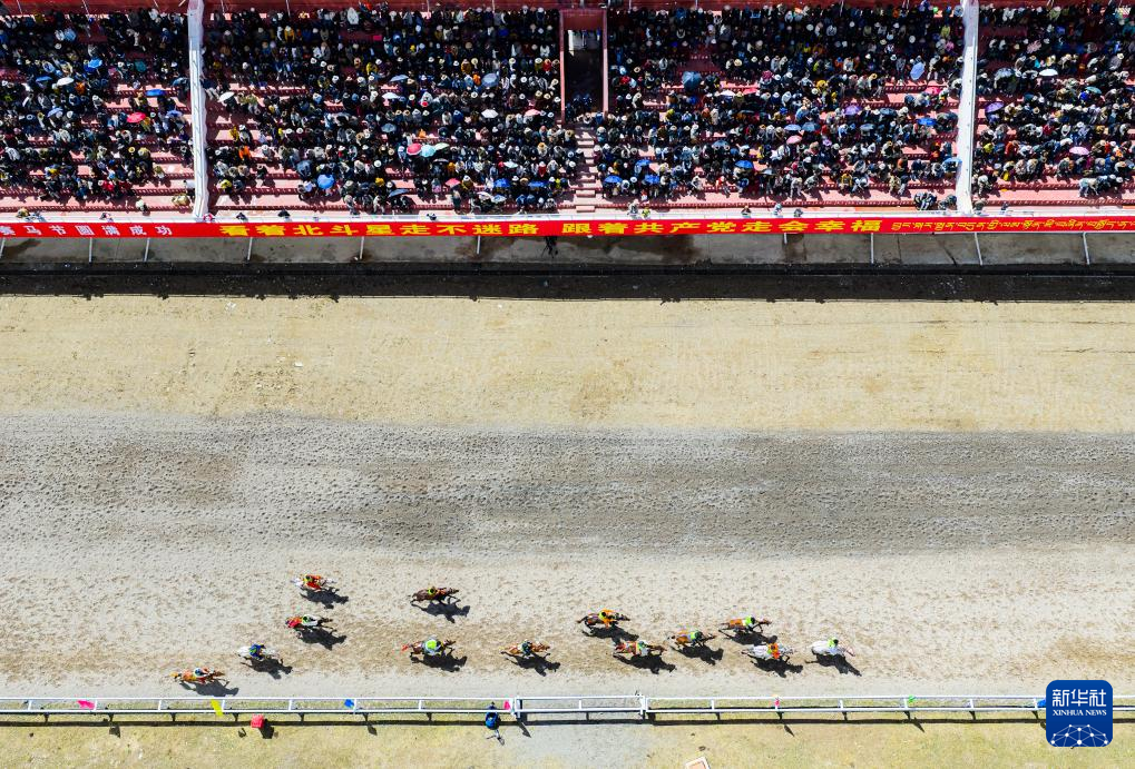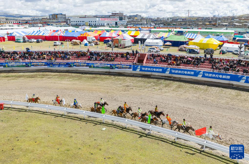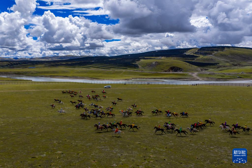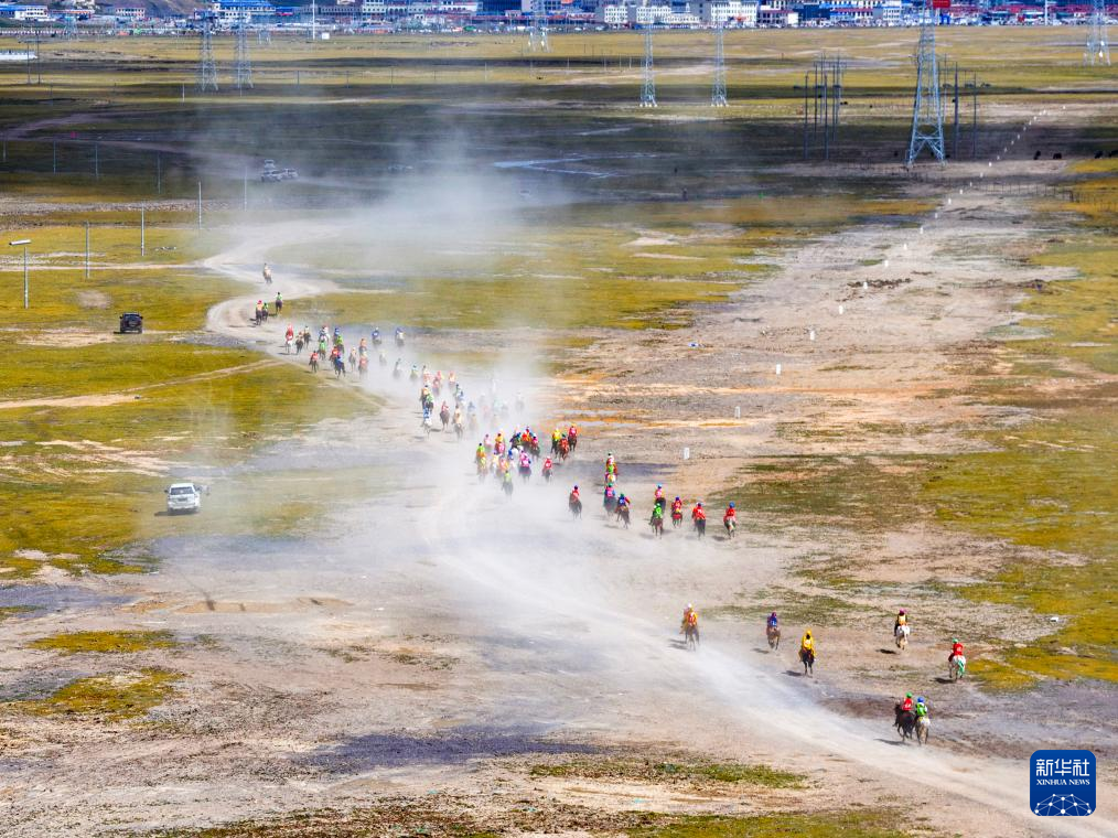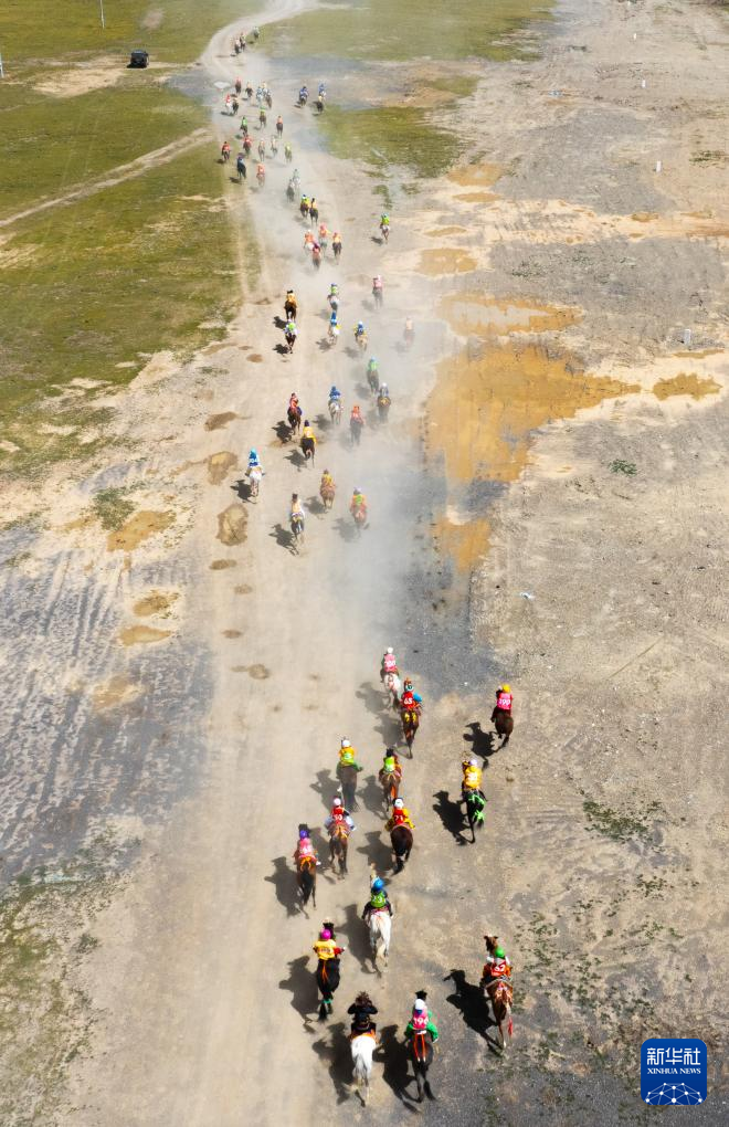 這是9月6日拍攝的恰青賽馬節(jié)比賽現(xiàn)場(無人機照片)。新華社記者 丁增尼達(dá) 攝