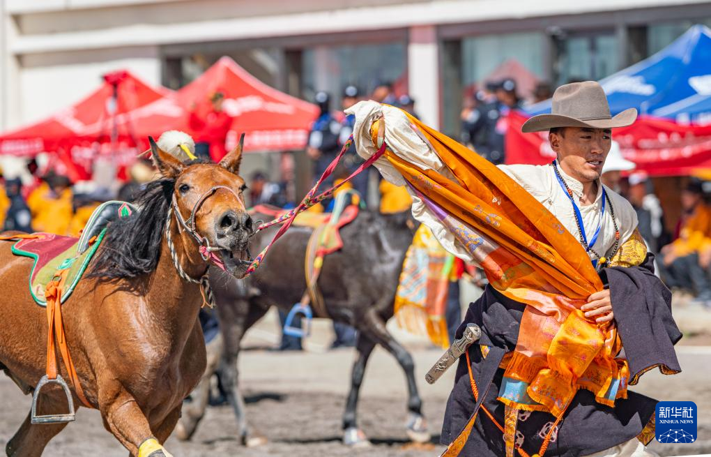 9月7日,騎手在傳統(tǒng)大跑項目前的傳統(tǒng)煨?;顒又衅砀!P氯A社記者 姜帆 攝