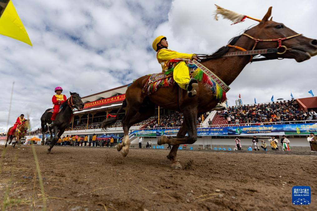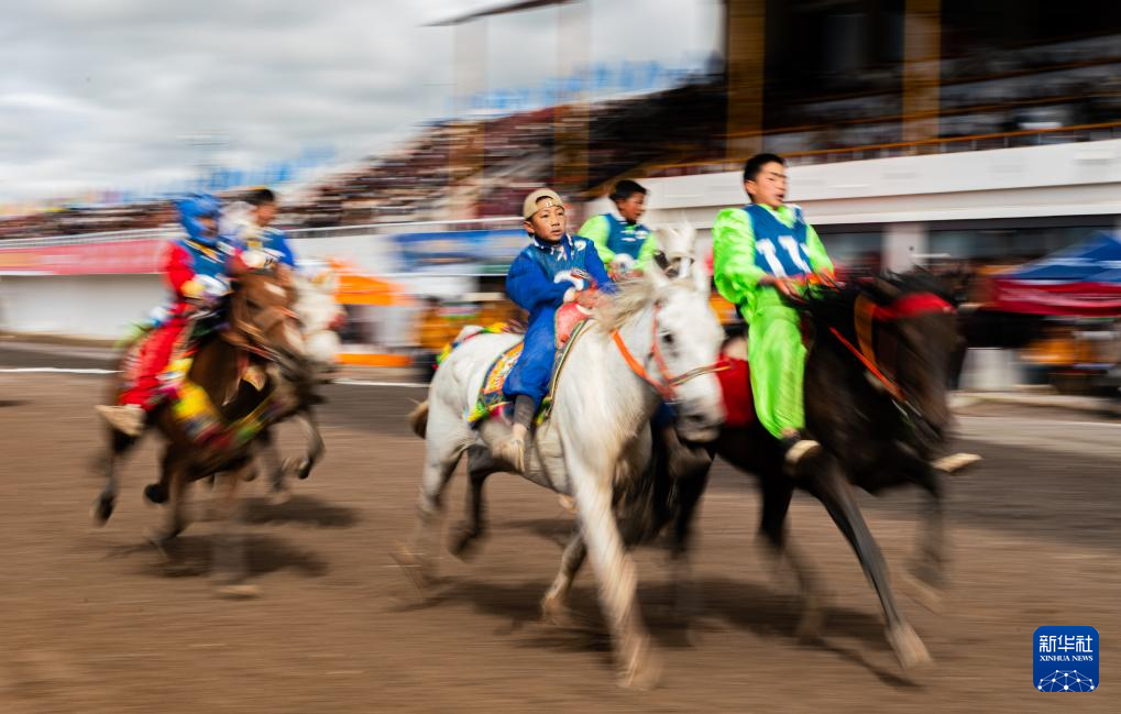 9月7日,騎手們在傳統(tǒng)大跑項目中馳騁。新華社記者 丁增尼達(dá) 攝