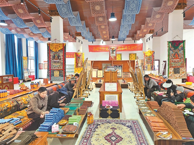 合作社成立后,始終秉持開放包容的理念。西繞尼瑪堅持技藝共享、共同致富,每年都會在村內外定期開展免費培訓,毫無保留地傳授自己的心得經驗。他的真誠吸引了桑珠榮村的男女老少,無論是白發(fā)蒼蒼的長者,還是年僅10歲的孩童,都會在空余時間來此學習。不僅如此,對于參與唐卡創(chuàng)作或藏香制作的村民,合作社還會按每日100元的標準支付勞動報酬,切實保障了大家的收益。據不完全統(tǒng)計,自2017年孵化基地建成以來,合作社已累計舉辦各類培訓40余場,接待了眾多考察交流團體。