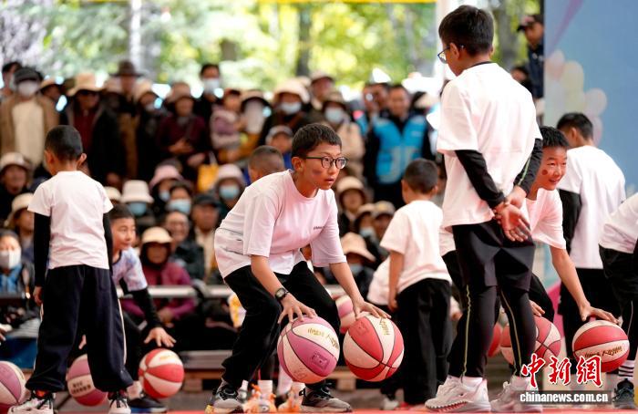 圖為西藏青少年校外實踐教育成果匯報展上的籃球技能展示。李林 攝