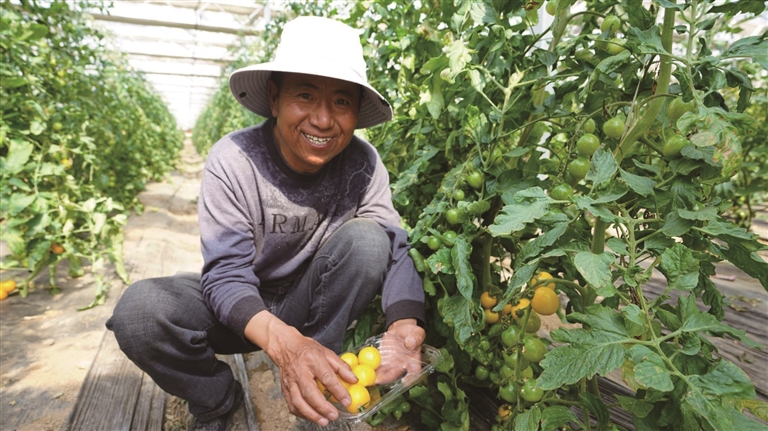 墨竹工卡縣塔巴村2組村民尼瑪正在大棚里照料四色圣女果。“在這里工作每月平均能掙4200元,還能學(xué)到特色果蔬的種植技術(shù)?!彼χf。目前,園區(qū)每天提供固定崗位13個,通過土地流轉(zhuǎn)、勞務(wù)用工等方式,已帶動周邊54戶群眾增收。近年來,墨竹工卡縣現(xiàn)代農(nóng)業(yè)產(chǎn)業(yè)園區(qū)累計向當(dāng)?shù)厝罕娭Ц锻恋亓鬓D(zhuǎn)費(fèi)625.33萬元,實(shí)發(fā)勞務(wù)費(fèi)累計400萬元。