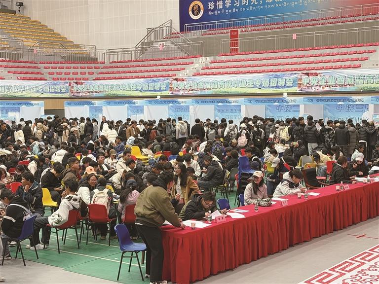 就業(yè)援藏,是保障和改善民生的頭等大事。依托央企就業(yè)援藏機(jī)制,西藏自治區(qū)教育廳高校畢業(yè)生就業(yè)指導(dǎo)服務(wù)中心聯(lián)合國務(wù)院國資委中智集團(tuán)、自治區(qū)國資委,經(jīng)過多輪磋商座談,精準(zhǔn)選定4所高校作為宣講站點(diǎn),將優(yōu)質(zhì)央企資源直接送到西藏高校畢業(yè)生身邊,組織了此次專場招聘會。