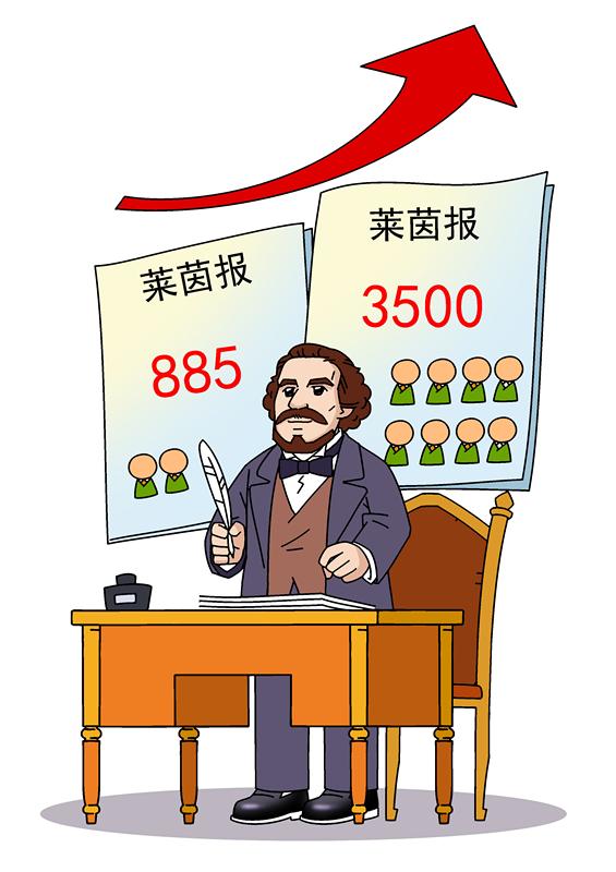 在馬克思的革命斗爭生涯中,他最初是以報刊為武器,向資本主義社會發(fā)起了出色的進攻。1842年10月,二十四歲的馬克思正式成為《萊茵報》主編,在他卓有成效的管理和犀利筆鋒的影響下,這份報紙的發(fā)行數(shù)量,在短短幾個月間從885份攀升至3500份,成為令政府書報檢察官頭疼的對象。馬克思第一次顯示出辦報的天份,并為以后創(chuàng)辦經(jīng)營《新萊茵報》積累了經(jīng)驗。1848年2月,法國爆發(fā)“二月革命”,將革命浪潮波及到全歐洲。馬克思恩格斯迅速從比利時返回德國科倫,并于當(dāng)年6月1日創(chuàng)辦了《新萊茵報》,這份報紙被列寧譽為“革命無產(chǎn)階級最好最卓越的機關(guān)報”。在《新萊茵報》存續(xù)的一年時間里,馬克思和恩格斯創(chuàng)作了四百多篇文章,他們能夠“看到每一個字的作用,看到文章怎樣真正像榴彈一樣打擊敵人,看到打出去的炮彈怎樣爆炸”。不僅《新萊茵報》是一個戰(zhàn)斗堡壘,就連馬克思本人也是經(jīng)常荷槍實彈,彪悍面對前來尋釁的軍官。有賴于馬克思的洞察力和堅定立場,《新萊茵報》成為革命年代德國最著名的報紙,發(fā)行量一度達(dá)到6000份,而在當(dāng)時號稱影響力巨大的《科倫日報》也不過是9000份的發(fā)行量 。從1849年開始,革命接連遭遇挫折,《新萊茵報》不得不于5月19日停刊。在停刊號上,馬克思詞鋒銳利,再一次展示革命導(dǎo)師彪悍的一面:“我們鐵面無情,但也不向他們要求任何寬恕。當(dāng)輪到我們動手的時候,我們不會用虛偽的詞句來掩飾恐怖手段?!?/p>