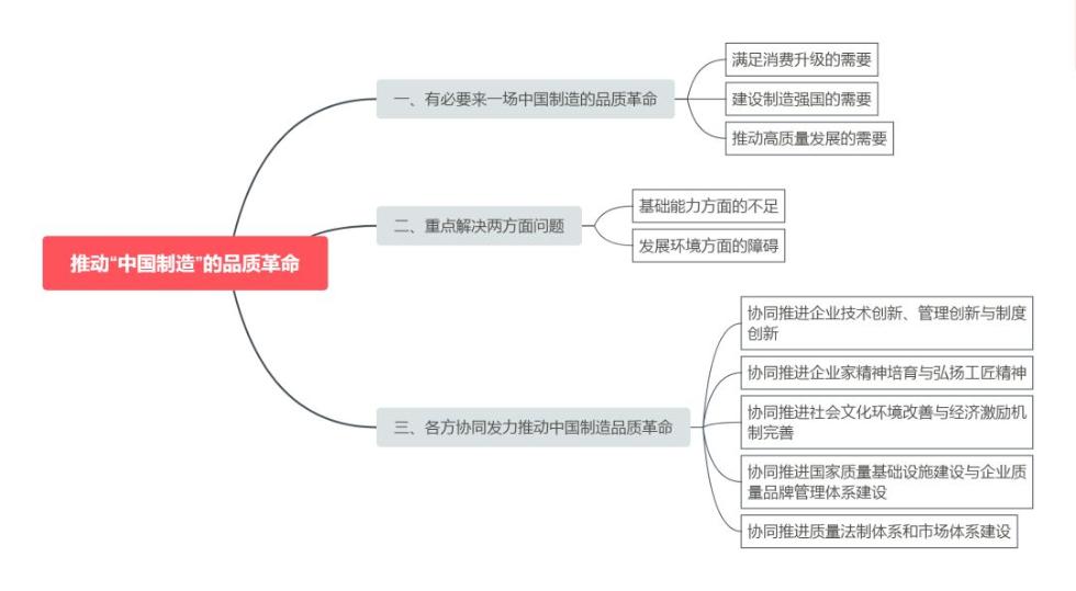 推動中國制造的品質革命,需要用系統(tǒng)性思維從社會經(jīng)濟的各個方面著手。這就要求以大質量觀為指導,建立涵蓋經(jīng)濟、政治、文化、社會、生態(tài)等多領域,企業(yè)主導、政府服務、各種社會組織共同參與的全面推進的質量管理體系。
