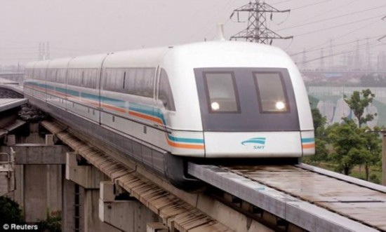 連接浦東機(jī)場和上海新金融區(qū)的國內(nèi)首列磁懸浮列車(圖片來源:央視網(wǎng))