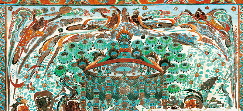 敦煌是古代中國認識世界的前沿,也是當時世界了解中國的窗口之一。在這里,來自印度、希臘、波斯等國家和中亞地區(qū)的文化,與中國文化平等對話,在交流融合中不斷創(chuàng)新、不斷進步,使其成為中西文明交往的樣板。圖為敦煌莫高窟第320窟的壁畫。 敦煌研究院供圖