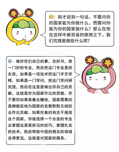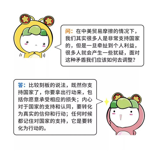 面對短期的困難和波動,青年人要清楚“美國在貿(mào)易戰(zhàn)中提出的要價(jià),不是小打小鬧”,應(yīng)該堅(jiān)定立場,“抗?fàn)幍降住?,也要“風(fēng)物長宜放眼量”,避免局限于眼前的小確幸,被暫時(shí)的挫折和困難所擊倒,要有與國家民族的發(fā)展同方向的扎實(shí)的行動,在實(shí)踐中實(shí)現(xiàn)自我價(jià)值。