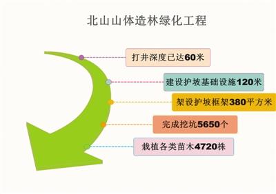 2017年,全市還完成補(bǔ)植補(bǔ)造各類苗木3.8萬(wàn)余株,完成南山公園停車場(chǎng)兩側(cè)綠化,累計(jì)栽植雪松、云杉、刺槐等70000余株。完成總面積489畝的南山恰加山核心區(qū)水系工程、景觀工程、道路工程、圍欄工程等建設(shè)。