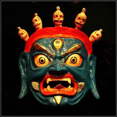 面具,對(duì)于很多人來(lái)說(shuō)是一種情結(jié),那是孩提時(shí)廟會(huì)上的必備品,卡通面具、戲劇面具,是那時(shí)候最常見(jiàn)的元素。透過(guò)面具,可以窺探神奇的世界。值得一提的是,面具并不是獨(dú)立的藝術(shù)形態(tài),很多常見(jiàn)的戲劇藝術(shù)中,都有面具元素的體現(xiàn),唐代歌舞劇《蘭陵王》就是一出著名的代面具戲,但后來(lái)逐漸發(fā)展形成了臉譜藝術(shù)。就青藏高原而言,藏戲與形影相隨,共同譜寫著藏戲幾百年的輝煌歷史。