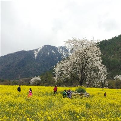 說起高原之春,就不得不提林芝“桃花節(jié)”了。林芝桃花以其獨特的風(fēng)光盛名在外、享譽(yù)全國。最具代表性的要數(shù)波密的野生桃花,其樹干雄勁、花朵綻放、春意盎然。粉嫩的桃花,在雪山懷抱中彰顯著無限柔媚。妖嬈的桃花映著蔚藍(lán)云天,美不勝收。那一片片野生桃林掩映在皚皚雪山之下,油菜花襯托其間,美得不可方物,仿若人間仙境。