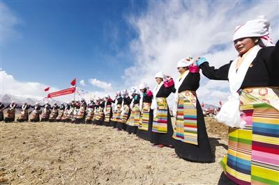 林周縣強(qiáng)嘎鄉(xiāng)曲嘎強(qiáng)村春耕儀式現(xiàn)場。李洲 次旺 攝