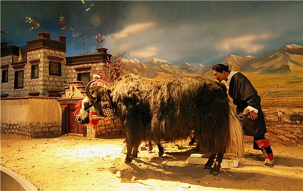 西藏牦牛博物館是北京市對口支援拉薩市的一項重要文化創(chuàng)意工程,位于拉薩河南岸柳梧新區(qū),建筑面積8088平方米,加上室外展區(qū),總面積達10000多平方米,各種藏品數(shù)千件。作為世界上第一個以牦牛為主題的博物館,西藏牦牛博物館不僅具有收藏、保存、展示、科研、教育、服務(wù)等基本功能,也是保存牦牛文化物證、傳播牦牛文化知識、探究牦牛與人類發(fā)展相互依存關(guān)系的公益性公共文化機構(gòu)。圖為牦牛博物館展示的物品。圖片來源:中國西藏網(wǎng)