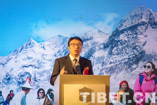 圖為當(dāng)雄縣委副書記、縣長其美次仁在推介會上致辭。