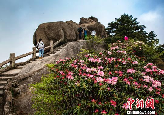 “五一”小長(zhǎng)假期間,正值黃山杜鵑盛花期,綻放的杜鵑花與該景區(qū)奇松怪石相映成趣。 鄧嵩山 攝