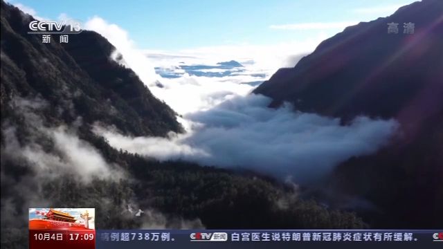 節(jié)日期間的海螺溝景區(qū)晴空萬里,海拔6410米的貢嘎山金銀峰,在藍天白云映襯下更顯巍峨壯麗。