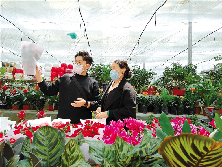 市民在拉薩智昭凈土產(chǎn)業(yè)園購(gòu)買鮮花。記者 周輝 攝