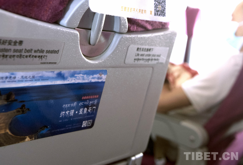 這是在西藏航空公司執(zhí)飛的客機(jī)艙座后所張貼的“圣象天門(mén)”招貼圖(唐召明2020年8月17日攝)
