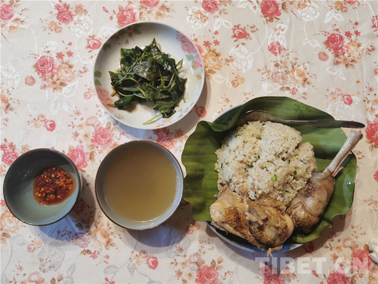 說起僜人發(fā)傳統(tǒng)文化,不得不說僜人的手抓飯。煮米飯、殺雞、搗辣椒……原料都產(chǎn)自深山密林。散養(yǎng)的土雞、地里的谷米和辣椒,再配上山里的香草、香料,就做成了風(fēng)味獨特的僜人手抓飯,成為僜人待待的保留節(jié)目。