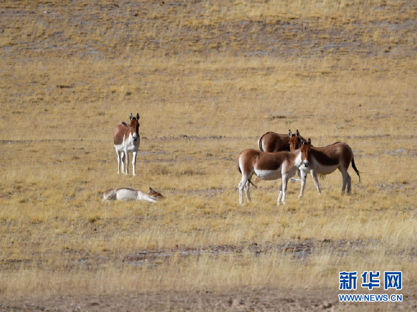 這是10月30日在青海省果洛藏族自治州瑪多縣境內(nèi)拍攝的一群藏野驢。新華社記者 張龍 攝