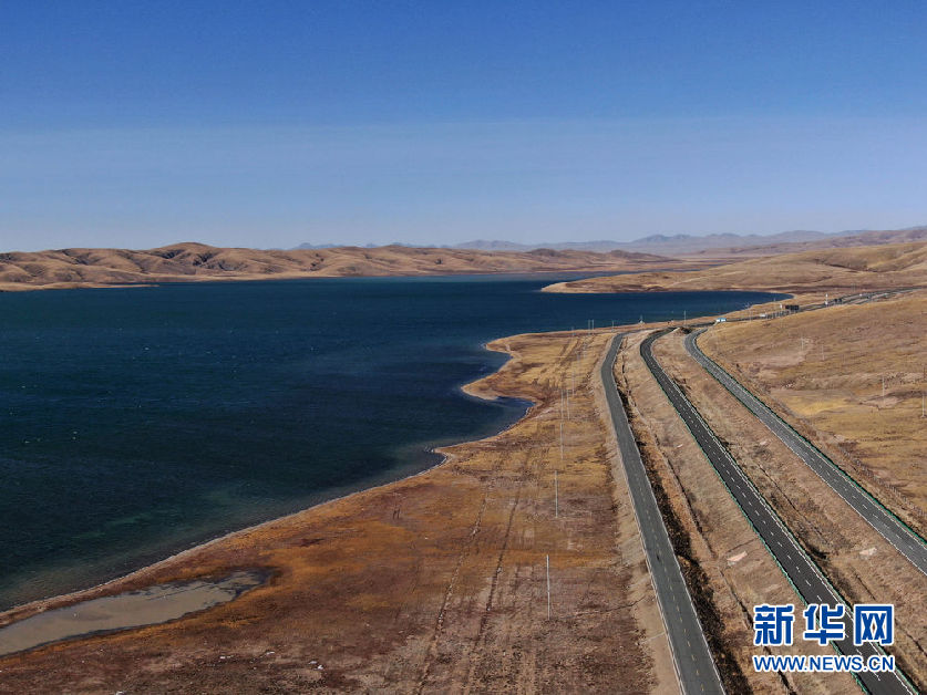 這是10月30日在青海省果洛藏族自治州瑪多縣境內(nèi)拍攝的一處湖泊(無(wú)人機(jī)照片)。新華社記者 張龍 攝