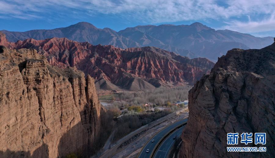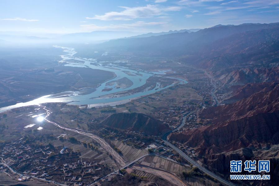 冬日時(shí)節(jié),青海省海南藏族自治州貴德縣的丹霞地貌在陽(yáng)光的照耀下,形成一幅美麗畫卷。
