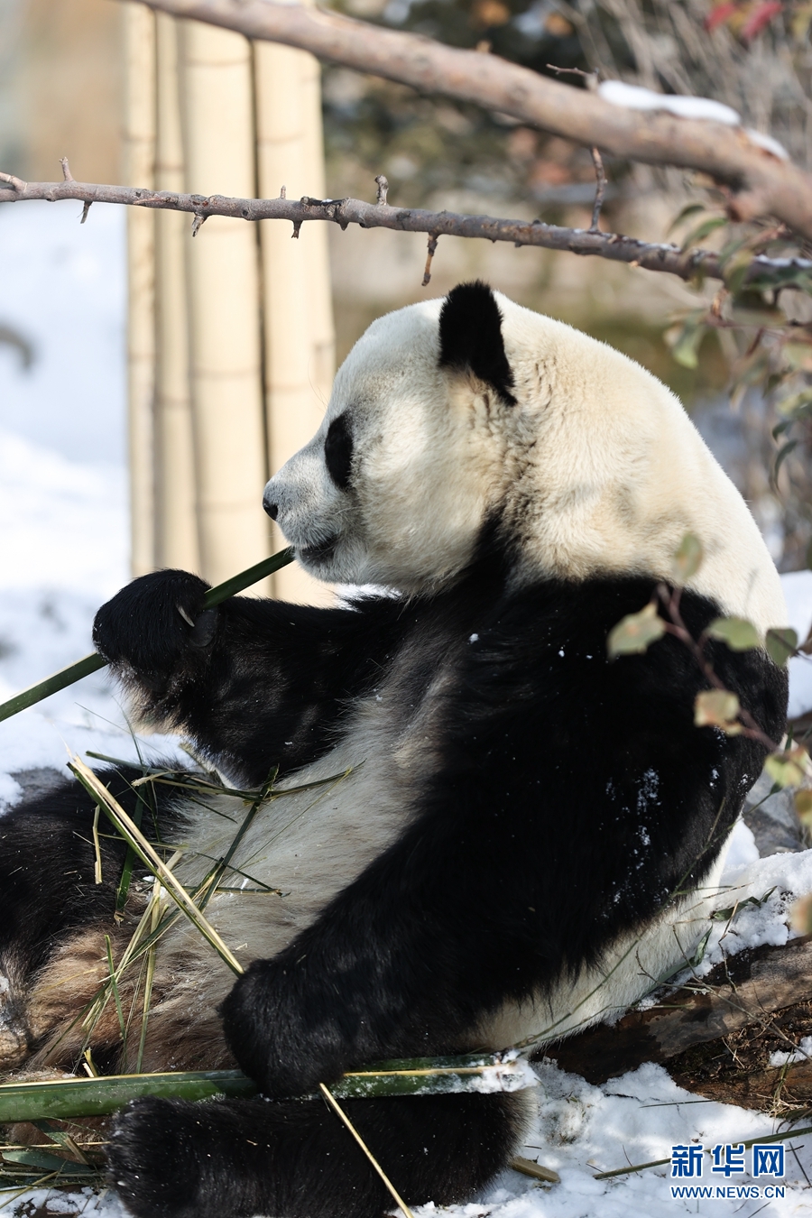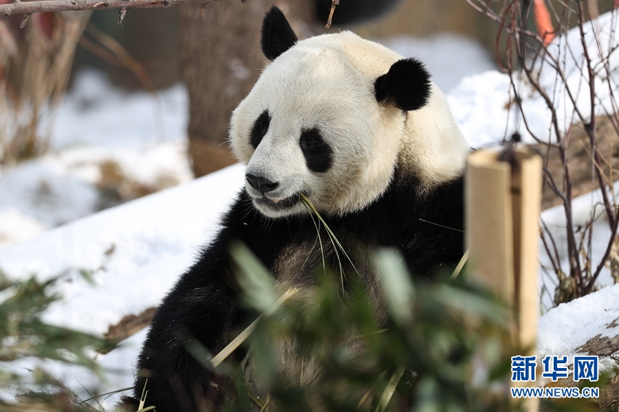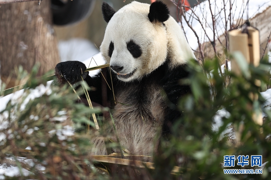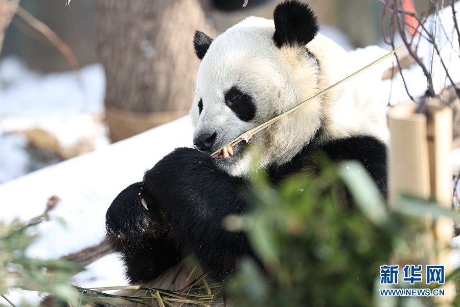 11月21日,西寧市熊貓館一只大熊貓?jiān)诔灾褡?。新華社記者 吳剛 攝