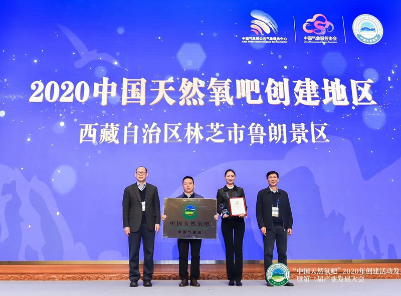 11月24日,由中國氣象服務(wù)協(xié)會主辦的“中國天然氧吧”2020年創(chuàng)建活動發(fā)布會暨第二屆產(chǎn)業(yè)發(fā)展大會在云南省紅河州彌勒市舉辦。在當(dāng)天的授牌儀式上,全國共有79個(gè)地區(qū)獲得“中國天然氧吧”稱號。其中,西藏林芝市魯朗景區(qū)成功入選,成為繼山南市錯那縣勒布溝之后,西藏自治區(qū)第二個(gè)獲此稱號的地區(qū)。