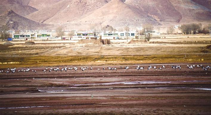 又是一年遷徙季,又是一年觀鶴時。為了繁殖和越冬,候鳥黑頸鶴每年都會進(jìn)行兩次遷徙。黑頸鶴是國家一級保護(hù)動物,藏語為“沖沖”,被藏族人民譽為“吉祥鳥”。每年入冬,成群的黑頸鶴從藏北遷徙至拉薩河及雅魯藏布江流域等地越冬,次年3月中旬北上繁殖。目前,已進(jìn)入越冬季,成群結(jié)隊的黑頸鶴已在拉薩市林周縣境內(nèi)如期赴約。