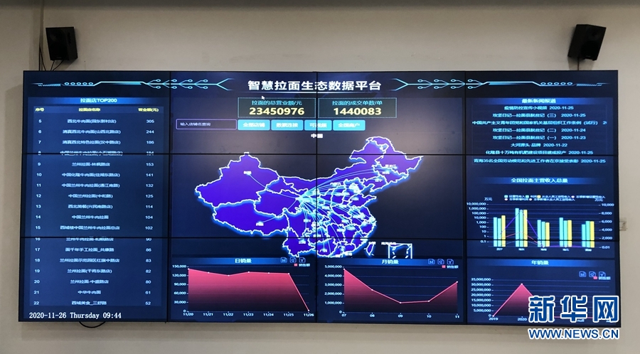 圖為“智慧拉面”生態(tài)數(shù)據(jù)平臺(tái)。新華網(wǎng) 魚(yú)昊攝