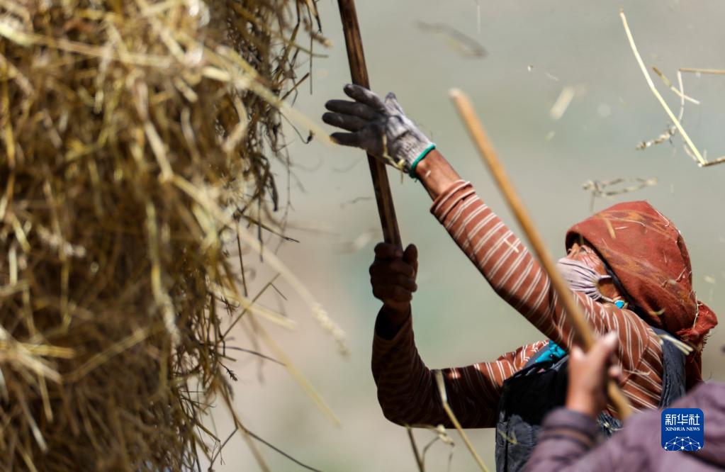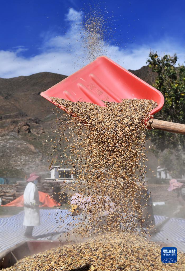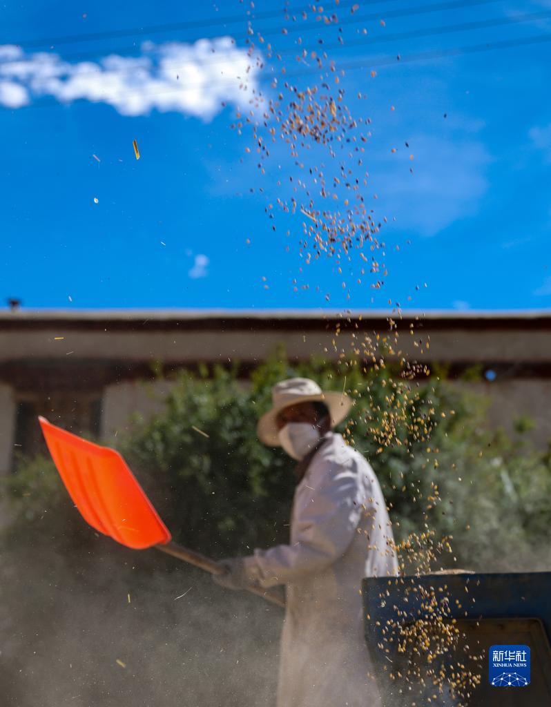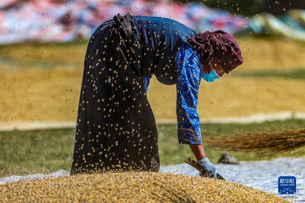 9月21日,拉薩市林周縣江熱夏鄉(xiāng)江夏村的村民在揚(yáng)場(chǎng)。新華社記者 覺(jué)果 攝