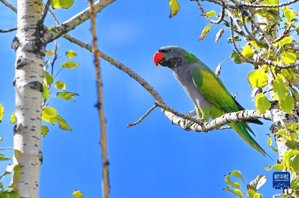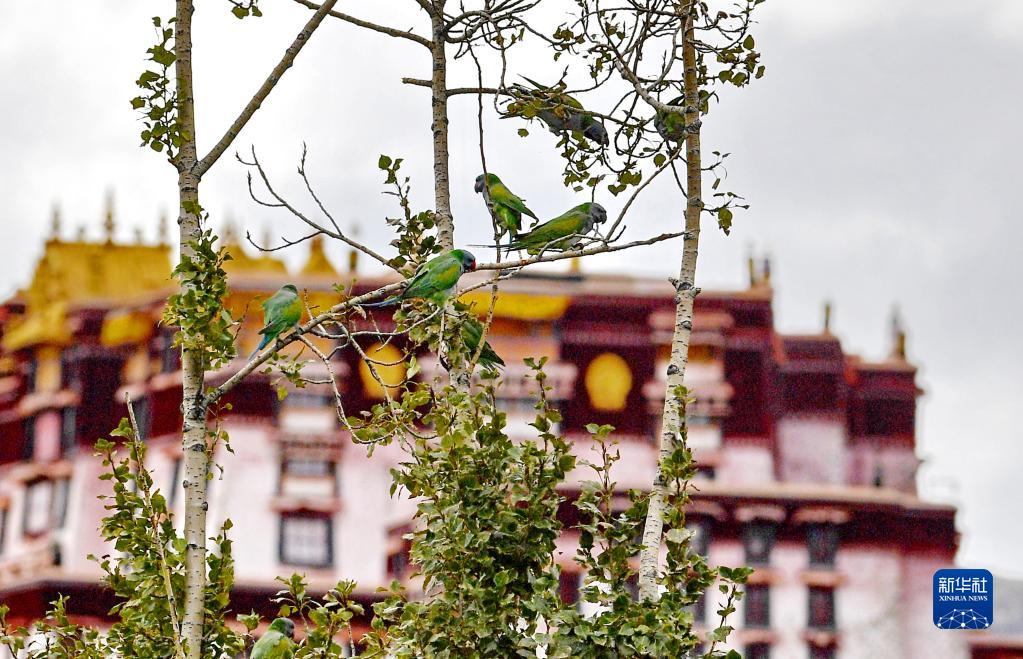 在拉薩市,大紫胸鸚鵡在樹上棲息(10月9日攝)。新華社記者 張汝鋒 攝