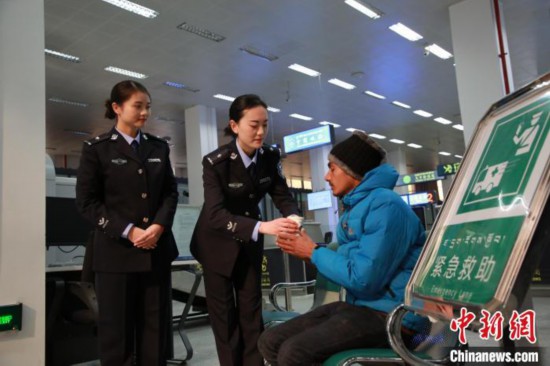 2018年12月,吉隆出入境邊防檢查站移民管理警察熱情服務緊急救助旅客。 肖富貴 攝
