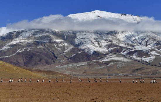 黑頸鶴是國家一級保護(hù)動物,主要棲息在海拔2500米至5000米的高原、草甸、沼澤地帶。拉薩北部的林周縣平均海拔約4200米,是黑頸鶴的主要越冬地之一。