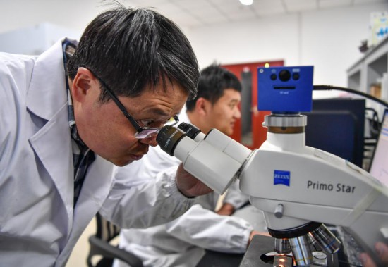 在西藏高原生物研究所,楊樂在實(shí)驗(yàn)室中觀察動物標(biāo)本(3月2日攝)。新華社記者 晉美多吉 攝