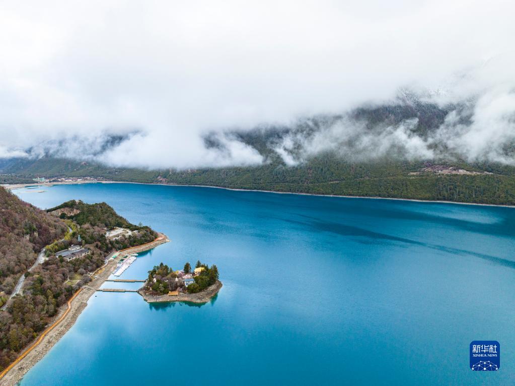 4月17日拍攝的巴松措(無人機照片)。新華社記者 曹檳 攝