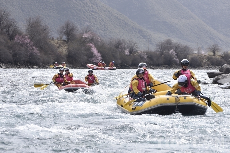 圖為4月16日,2.1公里激流漂流筏繞標賽比賽現(xiàn)場攝影:次旦拉姆