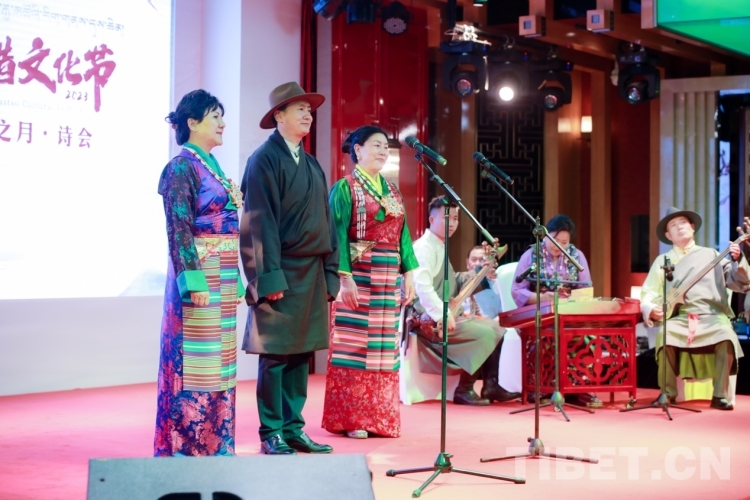 本次詩會通過朗誦倉央嘉措代表作和其他經(jīng)典文學、演唱富有民族特色的音樂作品、西藏國家級非物質文化遺產(chǎn)“藏戲”“朗瑪堆諧”等歌舞表演形式,重溫動人的詩歌,展示以倉央嘉措文化為代表的中國傳統(tǒng)文化的魅力。在“相約吉祥之月”詩會上,著名主持人、朗誦家任志宏,朗誦藝術家徐濤,配音藝術家、著名主持人“金龜子”劉純燕等文化名人朗讀了《在那東山頂上》《心上之人》《愛在心中》《杜鵑》《無心木船》等詩歌,以飽含情感的配樂朗誦,帶領現(xiàn)場嘉賓走進倉央嘉措的世界。