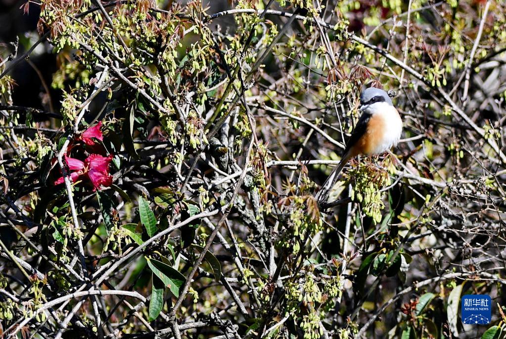 一只伯勞停留在枝頭(4月24日攝)。新華社記者 張汝鋒 攝