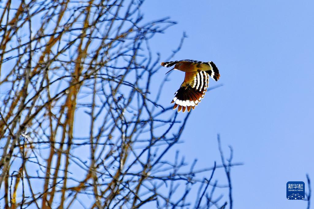 戴勝在拉薩市城關(guān)區(qū)蔡公堂街道次角林村上空飛過(guò)(5月14日攝)。新華社記者 張汝鋒 攝