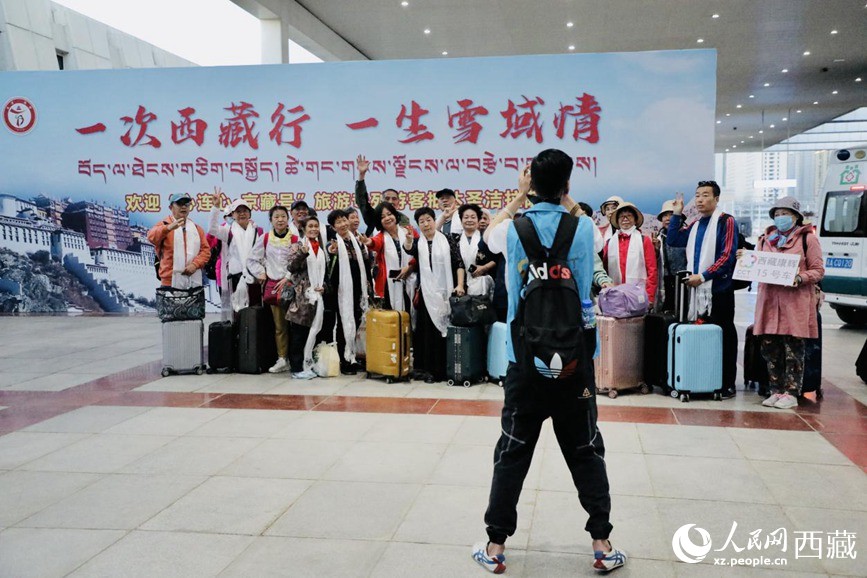 5月31日晚,隨著火車的抵達,來自北京的500名游客乘坐 “心連心 京藏號”援藏旅游專列抵達西藏拉薩。