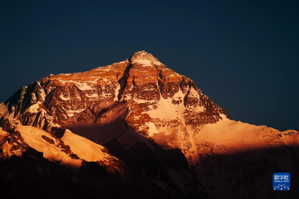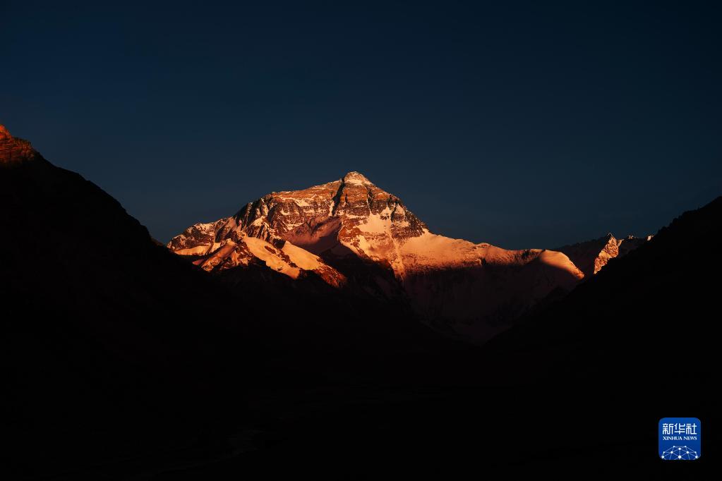 6月4日,最后一抹陽光即將從珠峰頂上消逝。新華社記者 費茂華 攝