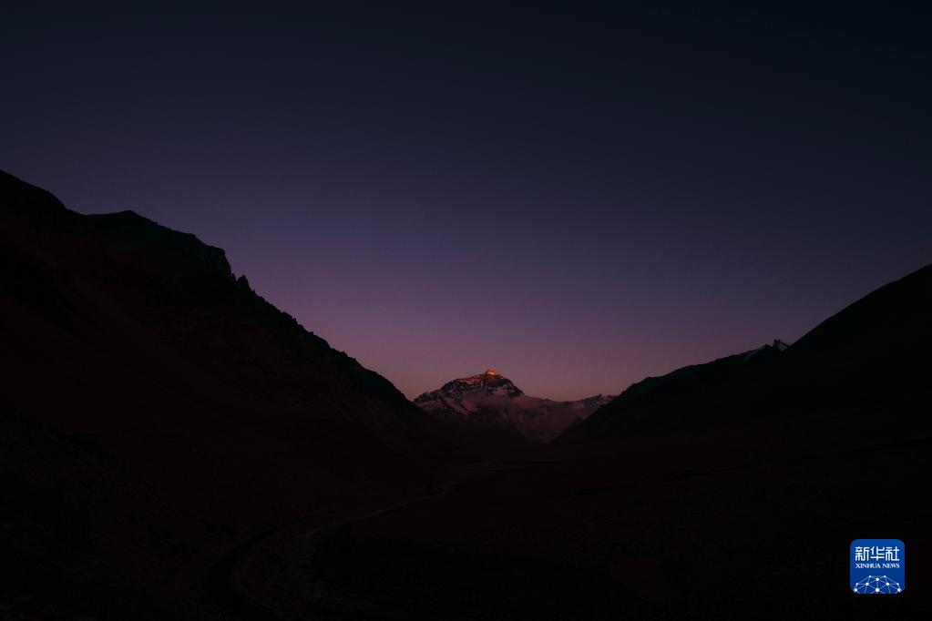 6月4日拍攝的太陽完全落山之后的珠峰。新華社記者 費茂華 攝