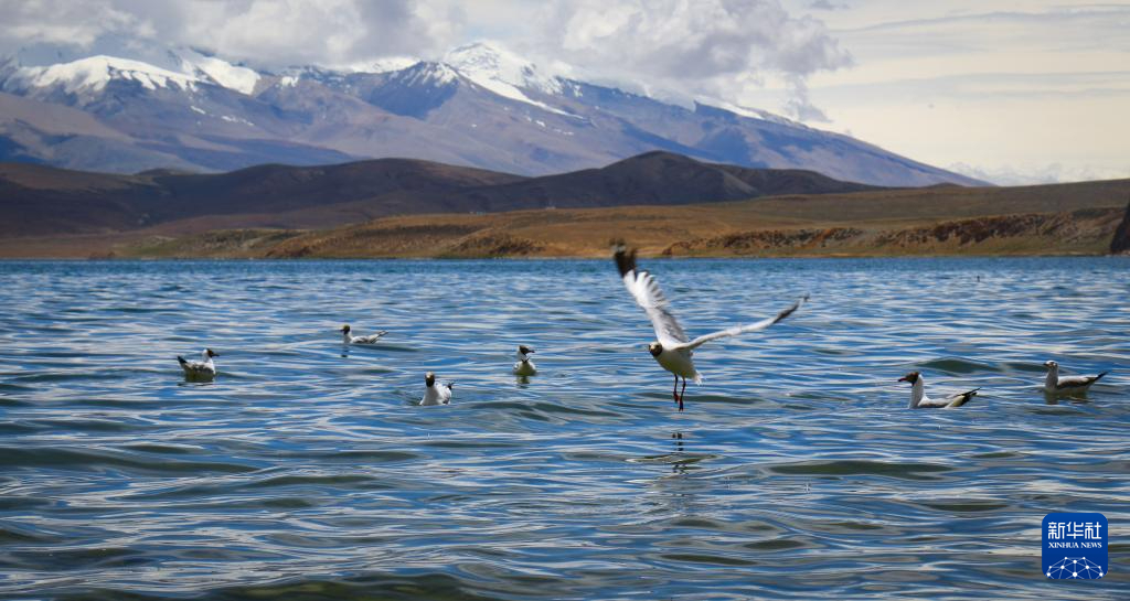 瑪旁雍錯(cuò)水鳥(niǎo)成群(8月13日攝)。新華社記者 聶毅 攝