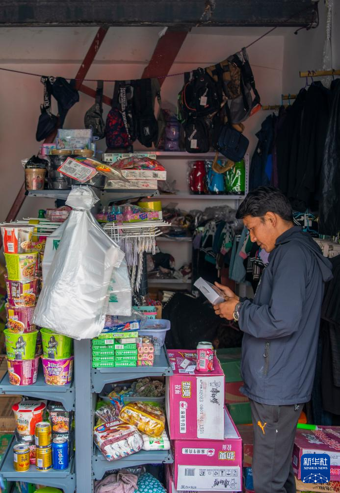 尼泊爾邊民在樟木口岸互市貿(mào)易市場(chǎng)選購商品(9月9日攝)。新華社記者 姜帆 攝??