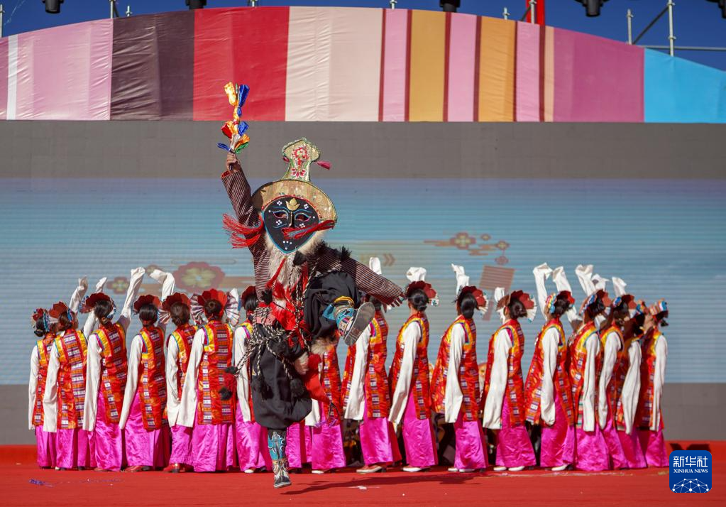 10月8日,演員在開(kāi)幕式上表演藏戲。新華社記者 邵澤東 攝