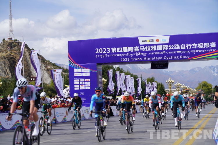 中國西藏網(wǎng)訊 騎行最美公路,環(huán)抱喜馬拉雅。10月17日上午,2023第四屆跨喜馬拉雅國際公路自行車極限賽第三賽段計時競速賽在拉薩鳴槍開賽。來自世界各地17支自行車隊100余名運動員在西藏首府城市拉薩市進行第三賽段(92.8公里)拉薩繞圈賽。